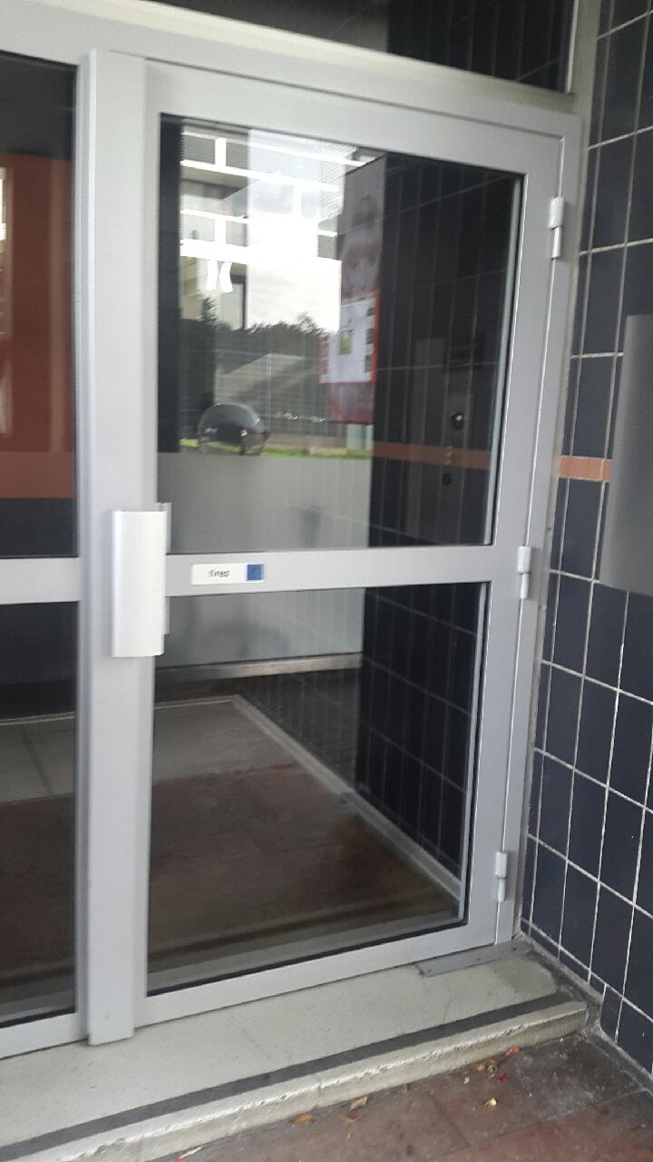 Remplacement d’une porte vitrée avec une structure en aluminium Porte forcée par des cambrioleurs remplacées à l’identique, mais spécialement renforcés contre les effractions avec des verres feuilletés SGG STADIP qui